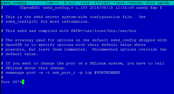 Чтобы поменять стандартный порт на ssh, в конфигурационном файле /etc/ssh/sshd_config замените значение в строке: