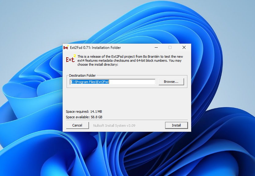 Скачать установщик Ext4fsd можно на странице Releases GitHub репозитория проекта. Установка довольно простая. Нужно нажать Install, и подождать завершения процесса.