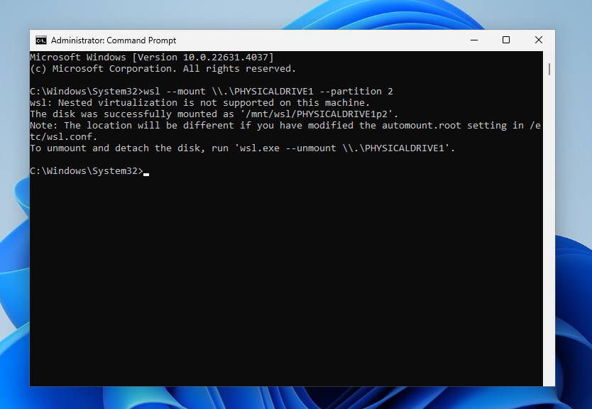wsl --unmount .PHYSICALDRIVE1