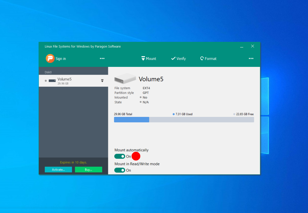 3. Linux Filesystems for Windows от Paragon (пробная версия)