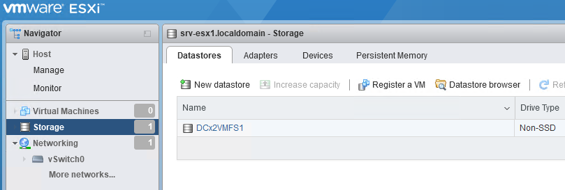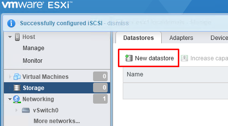 Перейдите в раздел Storage -> Datastores -> New datastore.