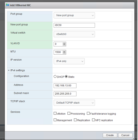 Настройка сети для iSCSI трафика в VMWare ESXi