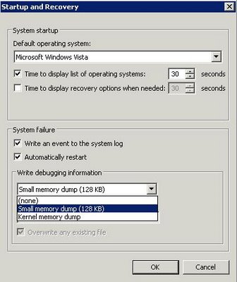 Возможно, вы уже заметили что в Windows Vista, Server 2008 и windows 7 отсутствует опция записи полного дампа памяти (full memory dump) при проблемах с системой, настраиваемого на вкладке «Startup and Recovery» («Загрузка и Восстановление»).