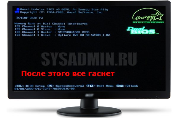 Проблема. Если Вы до сих пор не знаете, почему не включается монитор, то возможно проблема в операционной системе. Бывают случаи, когда компьютер нормально включается, на экране отображается информация про БИОС, а после этого появляется черный экран и картинка пропадает. При этом возможен даже вариант, что воспроизводится звук запуска Windows.