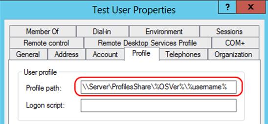- В качестве пути к профилю пользователя укажите: \ServerProfileShare%OSVer%%username%
