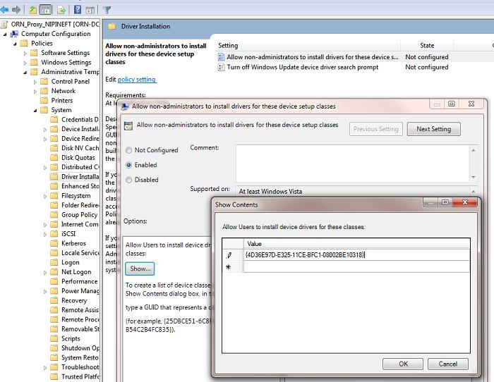 - Устанавливаемый класс драйвера должен быть разрешен для установки обычными пользователями