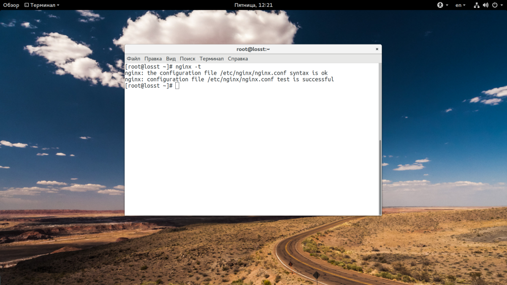 Теперь осталось протестировать то, что получилось. Сохраните файл и проверьте конфигурацию nginx:
