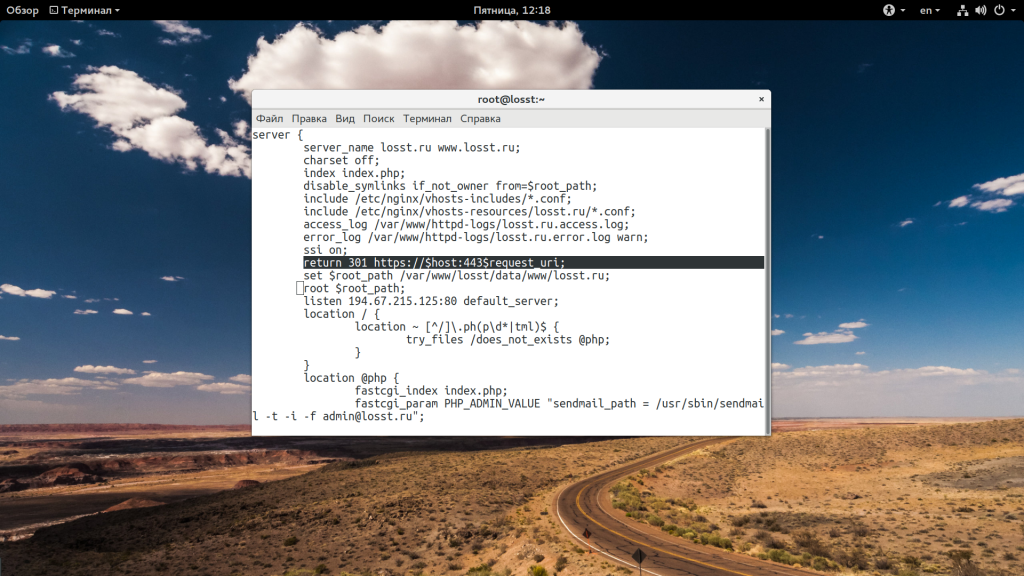 Как и большая часть сайтов интернета, которые следуют современным тенденциям losst.pro использует безопасный протокол связи https. Многим сайтам при переходе на https необходимо, чтобы весь трафик, который приходит на порт http автоматически перенаправлялся на https.