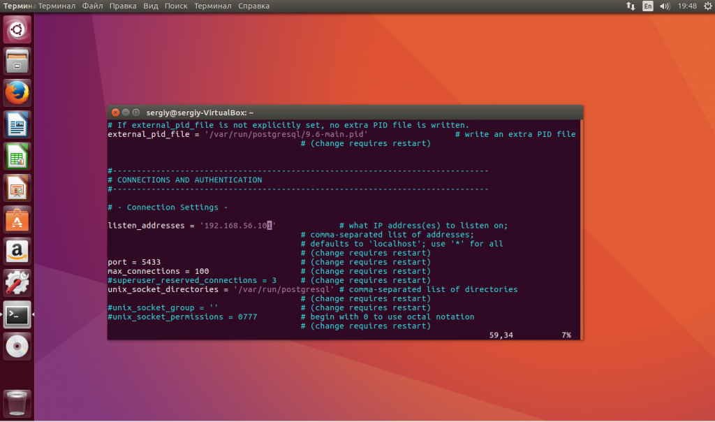 Вам нужно будет ввести пароль и дождаться пока будут загружены данные. Дальше нужно исправить настройки /etc/postgresql/9.6/main/postgresql.conf: