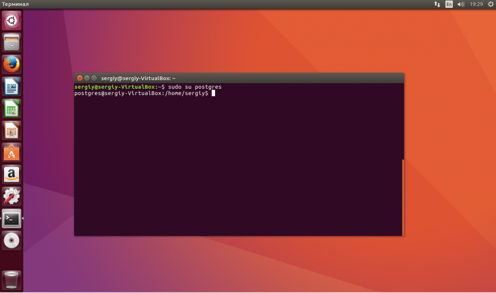 После того как Postgresql запущен, нам нужно настроить пароль для пользователя Postgres. Но для этого вам нужно авторизоваться под этим пользователем в системе: