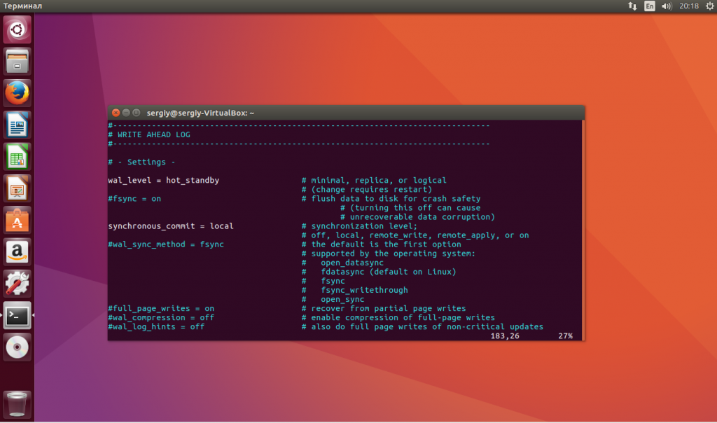 Сначала настроем мастер-сервер. Это основной сервер, который будет выполнять основные действия записи и рассылать данные на сервера Salve. Приложения могут не только читать, но и записывать данные взаимодействуя с этим сервером. Для его настройки нам нужно изменить содержимое файла postgresql.conf в папке /etc/postgresql/9.6/main/: