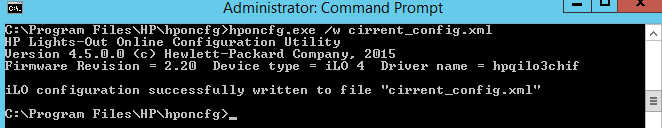 Сначала нужно сохранить текущую конфигурацию ILO в xml файл: