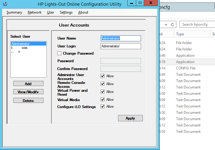 Однако, вы можете сбросить пароль iLO непосредственно из запущенной операционной системы. Для этого используется официальная утилита HPE — hponcfg или HP Online iLO Configuration для Windows (требуется установка драйвера iLO Management Interface Driver в операционной системе, которая запущена на сервере).