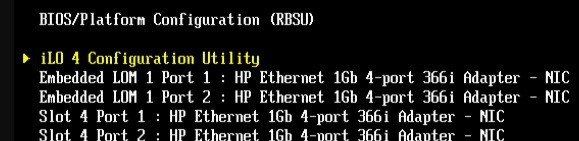 Затем нужно выбрать System Configuration -> iLO 4 Configuration Utility.