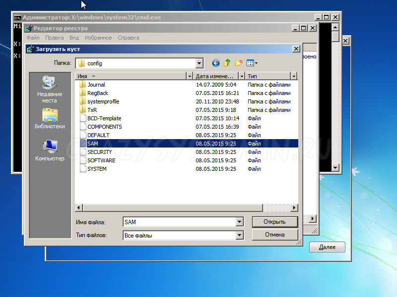 Нам нужно найти файл SAM, который лежит на диске с вашей операционной системой, в папке WindowsSystem32config.