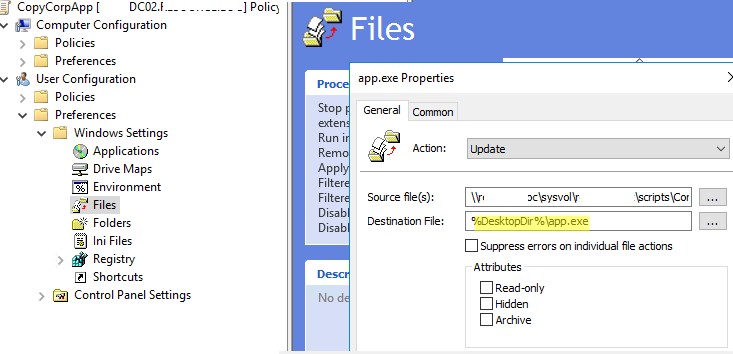 Вы можете использовать групповые политики чтобы скопировать определенные файлы и папки на компьютеры пользователей компьютеры домена. Вы можете поместить файлы на рабочий стол, в определенный каталог профиля пользователя или любой другой каталог на локальном диске Windows компьютера. С помощью GPO вы можете автоматически копировать и обновлять из единого репозитория различные файлы конфигурации, ini-файлы, исполняемые exe-файлы приложений, dll-библиотеки или скрипты.