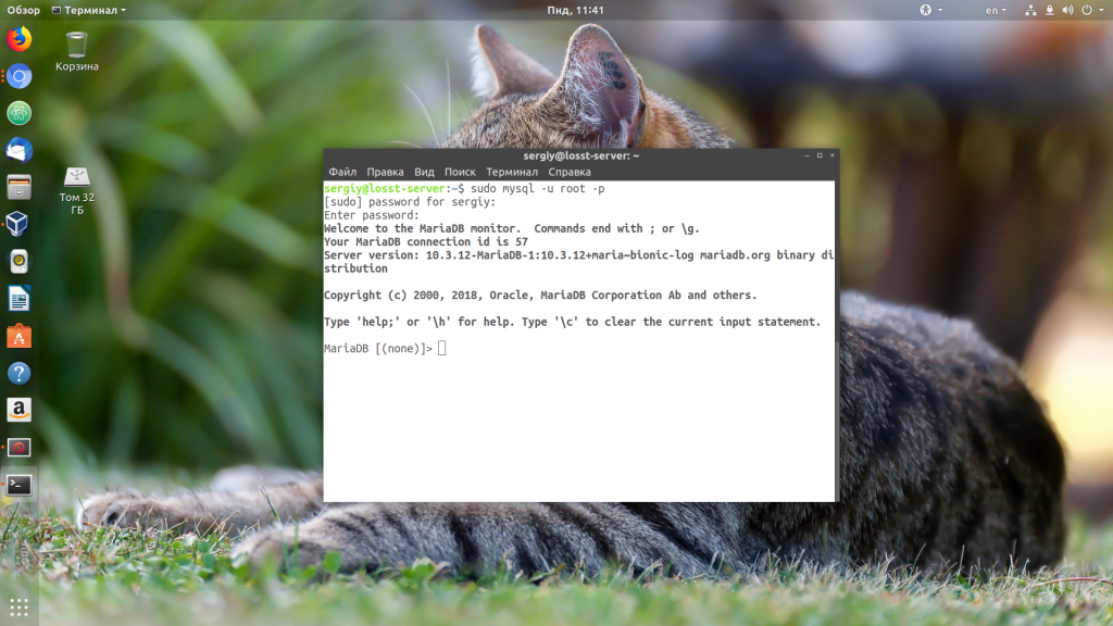 Предположим, что база данных уже создана и называется test_database. Нам нужно открыть клиент базы данных. Для этого наберите в терминале: