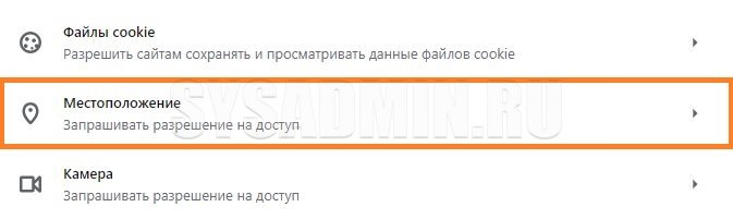 - Ищем пункт «Доступ к местоположению», и ставим значение «Запрещен».