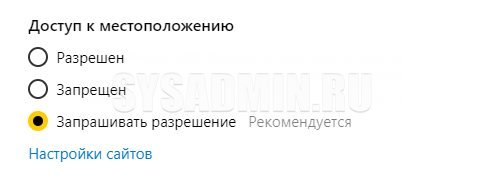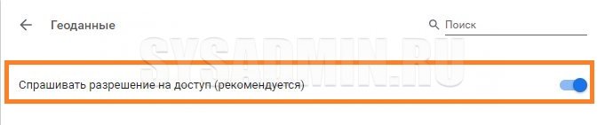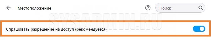 - В самом верху будет переключатель «Спрашивать разрешение на доступ (рекомендуется)». Если его переключить в выключенное состояние, то запросы о разрешение определения местоположения больше не будут появлятся.