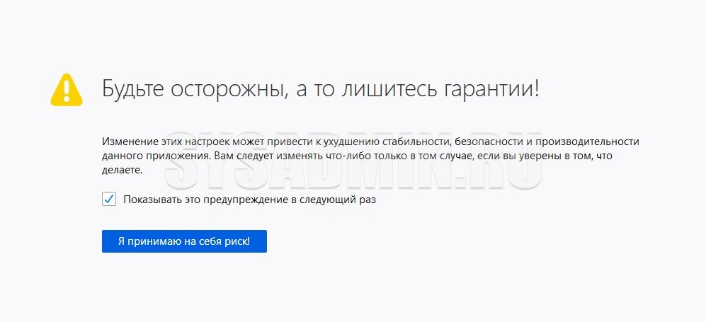 - В браузере Firefox отключение подобных запросов происходит через редактирования конфигурации браузера. Чтобы туда попасть, достаточно в адресной строке набрать