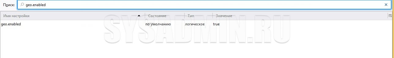 geo.enabled(используя для этого строку поиска), и меняем его значение с true на false (сделать это можно простым двойным нажатием левой кнопки мышки на параметре).