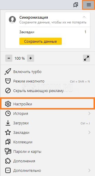 - В Яндекс Браузере, как и во всех остальных браузерах, подобные запросы отключаются через настройки. Зайти в них можно через значок из трех полосок в верхнем правом углу Яндекс Браузера, и в выпадающем меню выбрать пункт «Настройки.