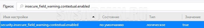 insecure_field_warning.contextual.enabled, и меняем его значение двойным кликом с True на False.
