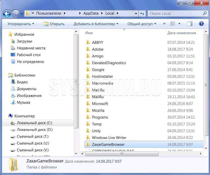C:UsersИМЯ ПОЛЬЗОВАТЕЛЯAppDataLocalZaxarGameBrowser, и удаляем её. - Следующим шагом будет удаление файла установщика Zaxar, который можно найти введя следующее в адресной строке Проводника, или любого другого файлового браузера —