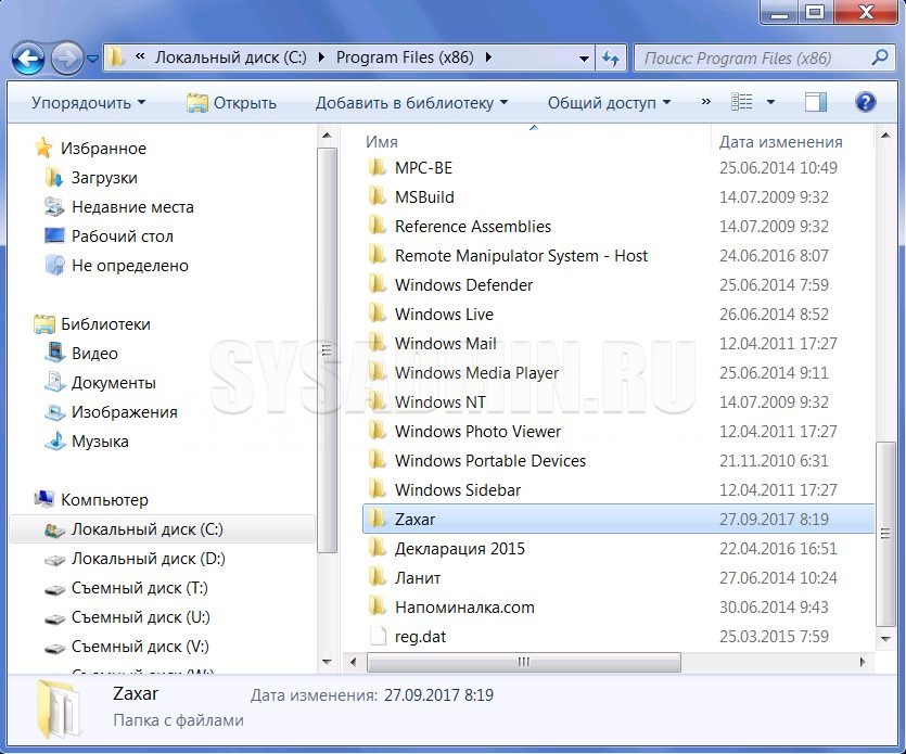 C:Program Files (x86)ZaxarилиC:Program FilesZaxar(в зависимости от разрядности установленной операционной системы). - Так же ищем папку Zaxar по следующему адресу —