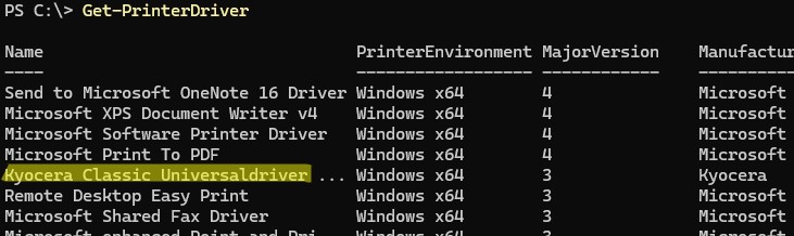 Add-PrinterDriver -Name "Kyocera Classic Universaldriver PCL6"