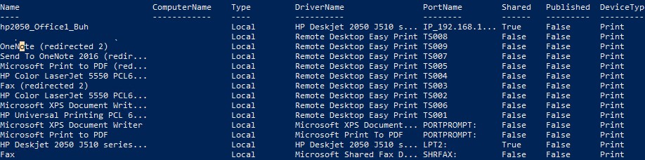 Вывести список принтеров на сервере печати с помощью PowerShell