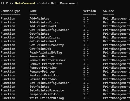 Get-Command –Module PrintManagement