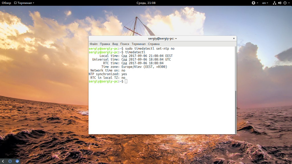 - Установка времени через терминал