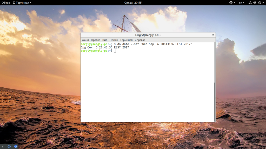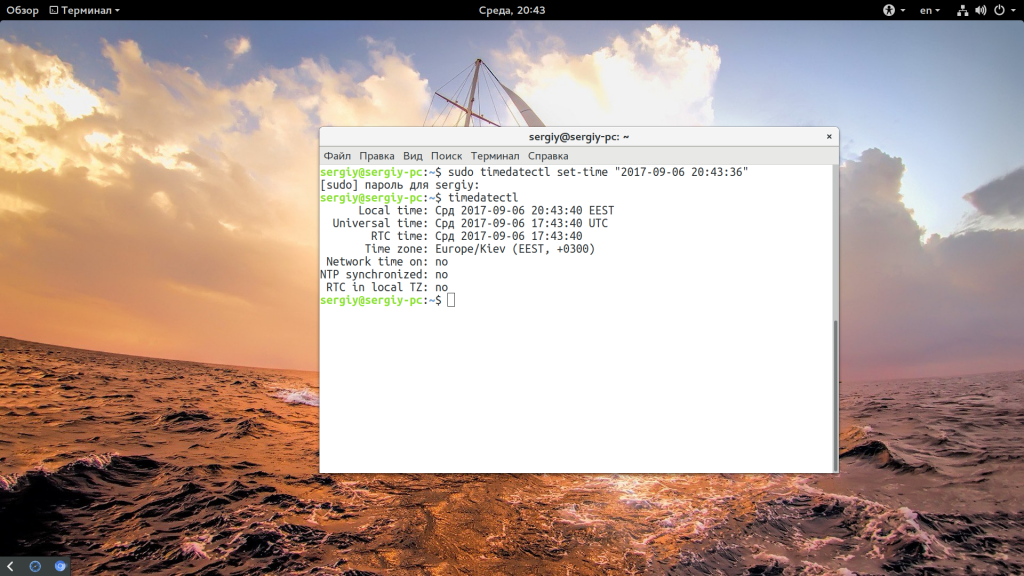 Установка времени через терминал