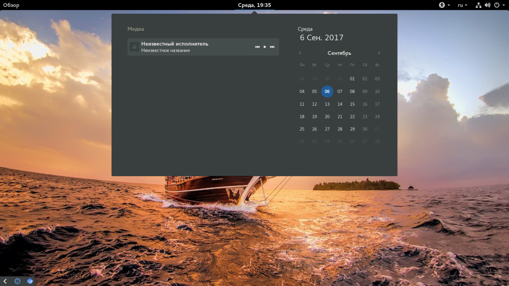 Если навести курсор на время, вы увидите более подробную информацию, область уведомлений и календарь.