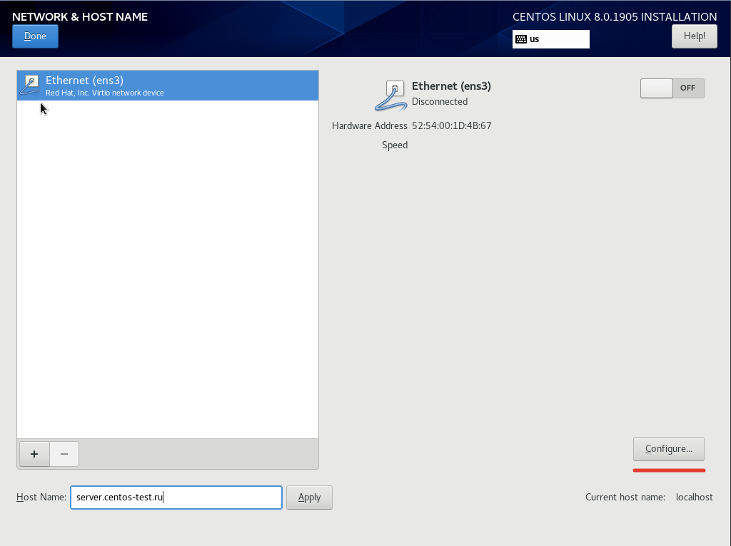 В поле “Host Name” указываем имя сервера и для конфигурации сетевых интерфейсов нажимаем “Configure”