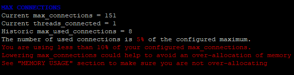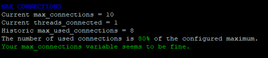 Например, у меня скрипт сразу же выдал, что используемое количество коннектов гораздо меньше, чем я выставил:
