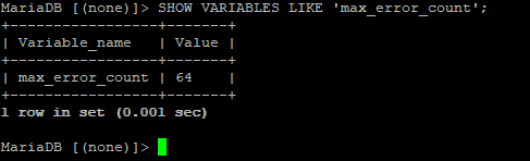 SHOW VARIABLES LIKE 'max_error_count';