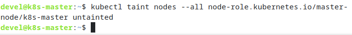 # kubectl taint nodes --all node-role.kubernetes.io/master-node/k8s-master untainted