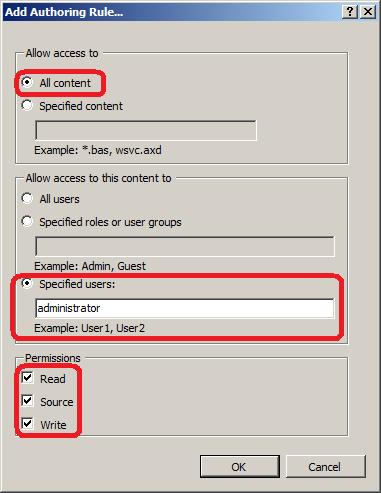 - В окне Add Authoring Rule укажем: