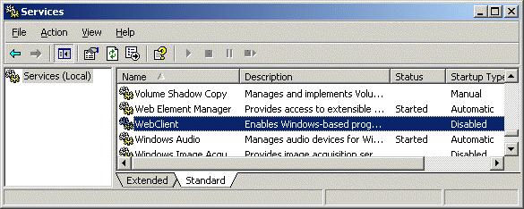 - Для того, чтобы подключить диск по WebDAV с клиента Windows XP, необходимо убедится, что запущена служба WebClient