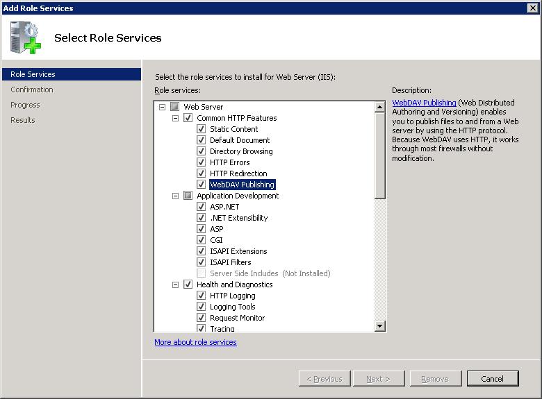Установка WebDAV на IIS 7.5 в Windows Server 2008 R2