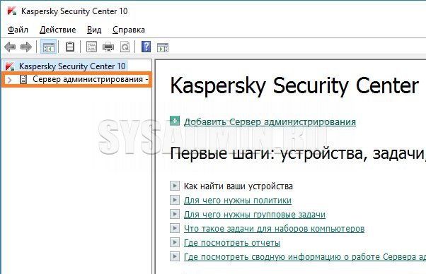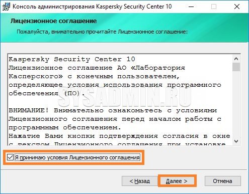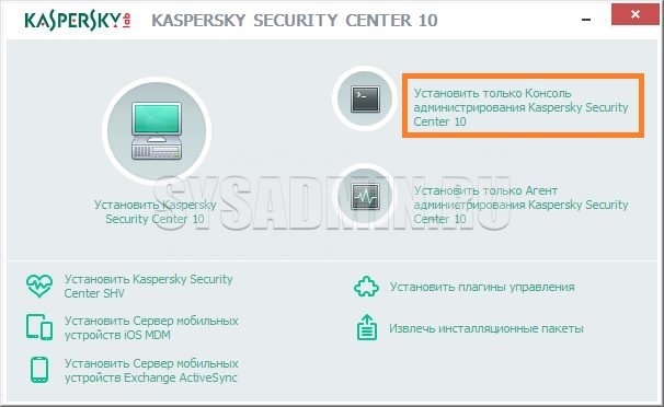 Отдельная установка консоли администрирования Kaspersky Security Center