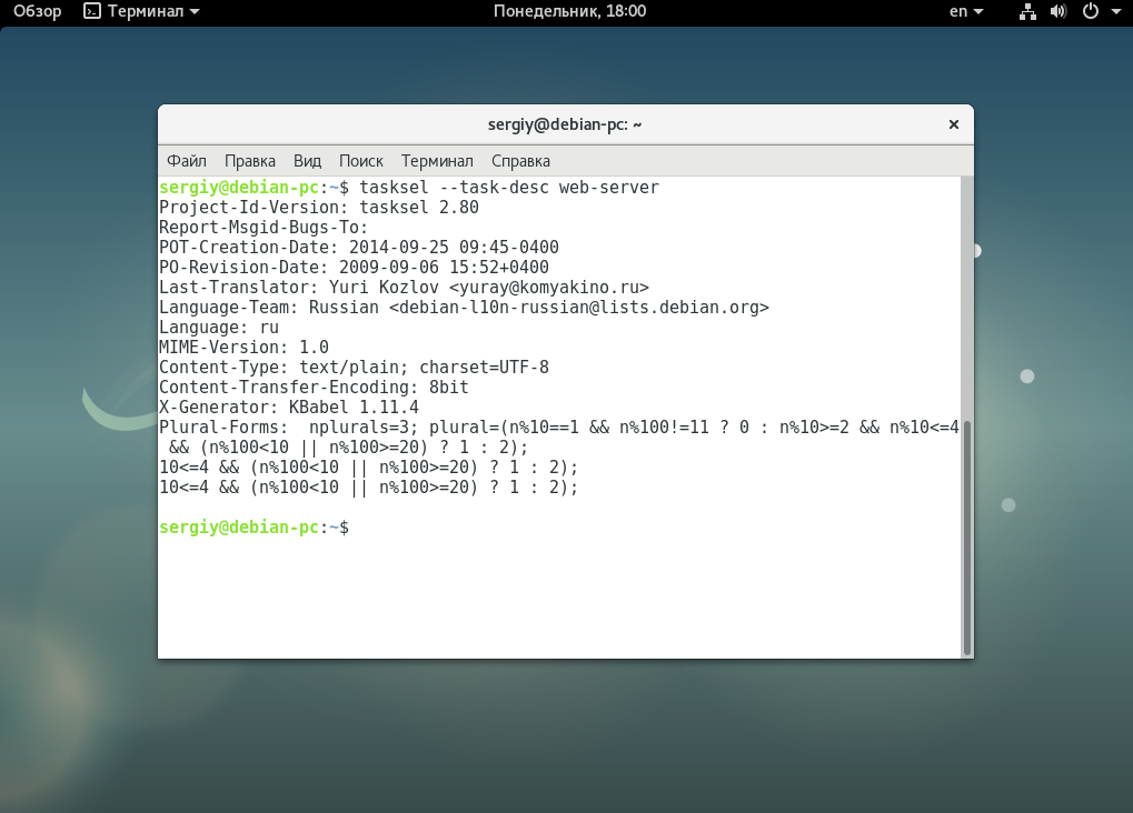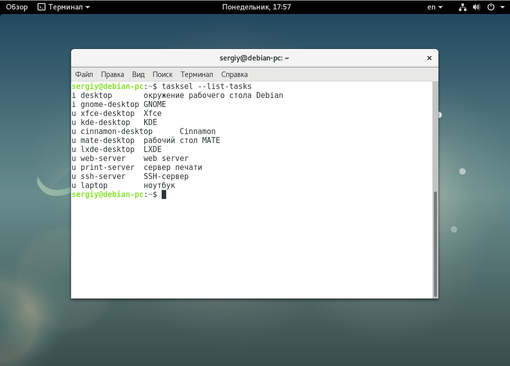Инструмент tasksel разработан специально для Debian. Он позволяет устанавливать пакеты группами. Разработчики сгруппировали пакеты в зависимости от их предназначения и вы можете установить одну из нужных групп. Именно эта утилита используется в установщике Debian.