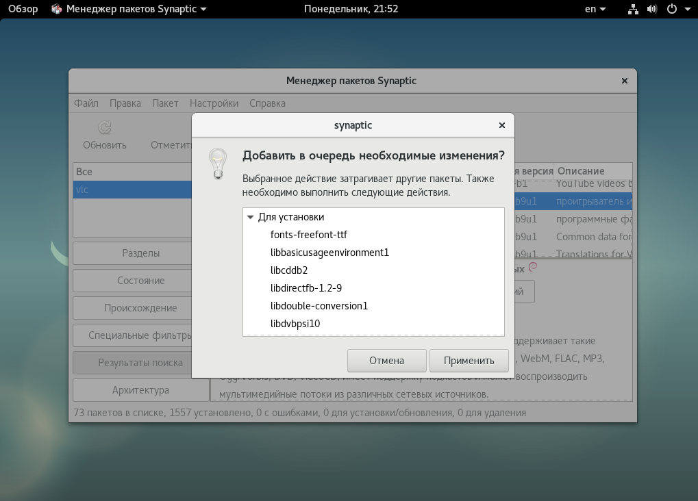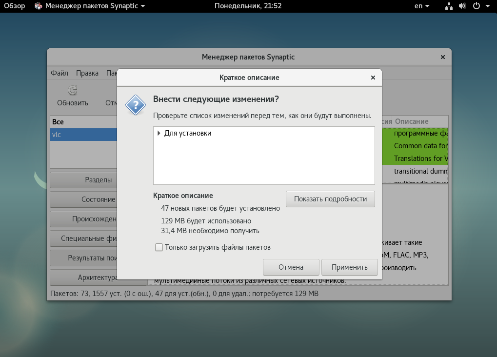 Чтобы установить выбранные пакеты, нажмите кнопку «Применить».