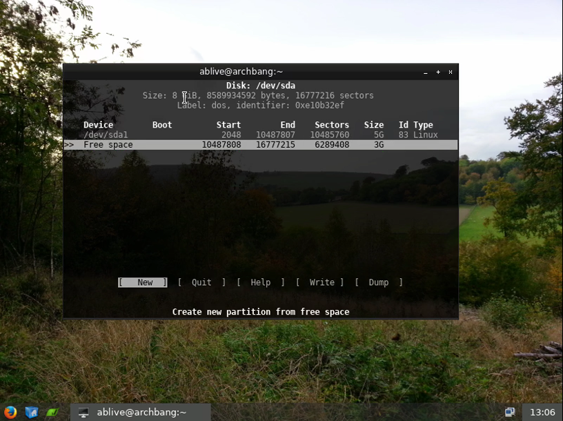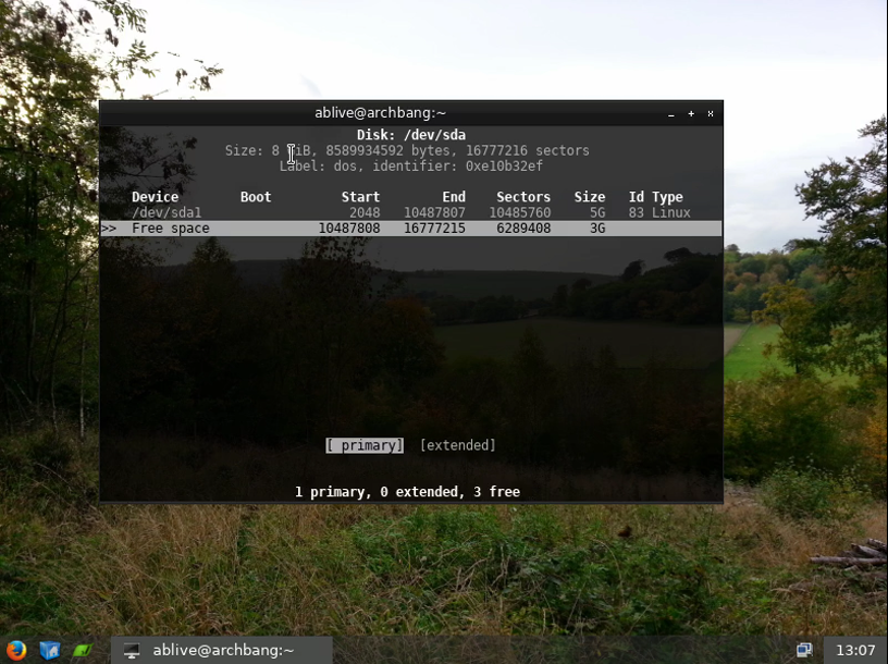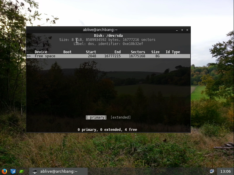 Первое что нужно сделать, это выполнить разметку диска. Для этого мы будем использовать утилиту cfdisk. Я предполагаю что ваш диск полностью чист или вы уже нашли достаточно свободного пространства.