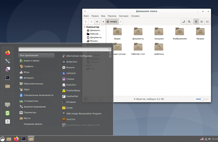• В качестве файлового менеджера используется Nemo. Это ещё один форк Nautilus с улучшенной интеграцией в эту оболочку.