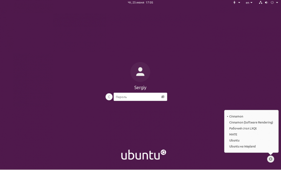 После завершения установки перезагрузите компьютер или завершите текущий сеанс. В окне входа вы сможете выбрать сессию Cinnamon нажав на специальную шестеренку: