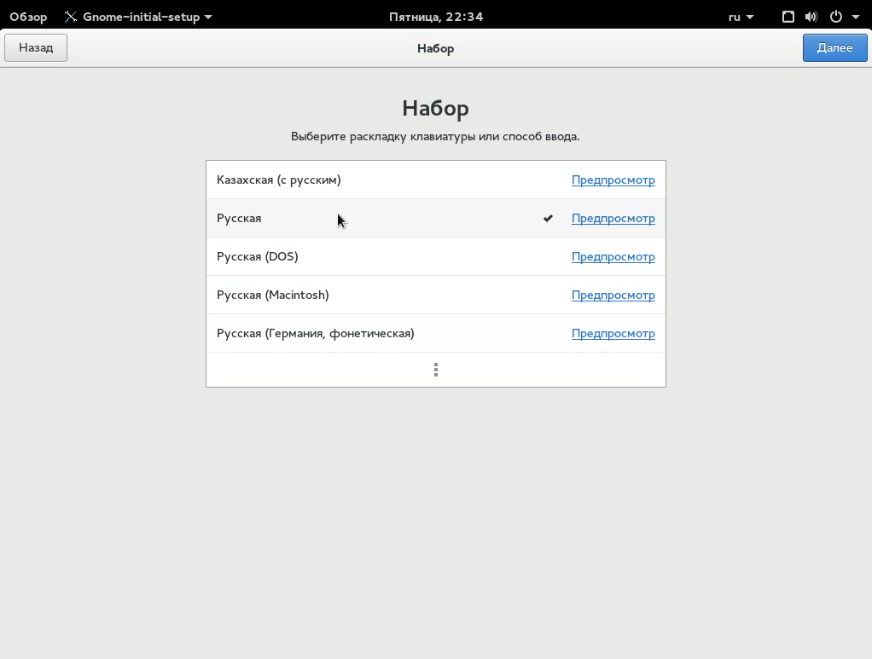 После завершения предыдущих настроек нам предлагают настроить раскладку клавиатуры.
