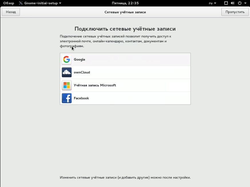 В этом окне можно подключить дополнительные сетевые аккаунты, для доступа к файлам в облаке: